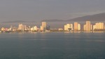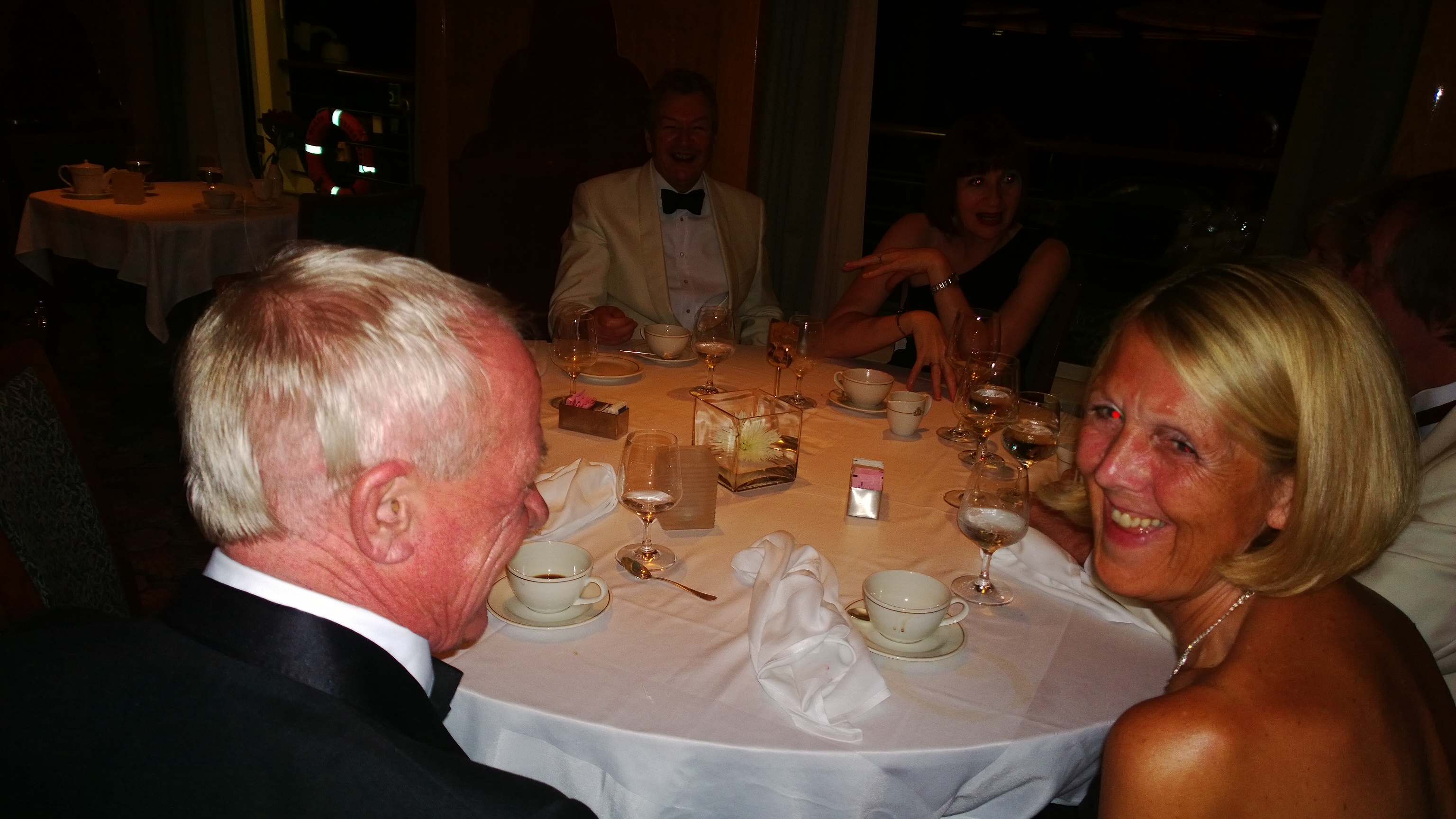 Boarding again we set off on a tour through the hundreds of tiny islands, the sea mirror calm and our speed barely walking pace. It was an amazing experience, round first one then another and so on, in every direction we looked were these islands rising vertically (some to over 700 feet and more) from the sea, impossible for anyone to land on as they were sheer to the top, flattening out sufficiently for trees to grow on. Unexpectedly we came upon a floating village, small houses built on platforms all moored in a group under the shelter of a towering cliff face. Strangely enough each one was numbered, each number exactly the same size and painted in exactly the same off white colour. It would take the postman a long time to do his round. Drifting past there was hardly a sound and very few signs of life, save for a dog racing up and down one of the platforms. Emergency rations? There was even a floating bank, Carol asked, “Is that what they call Off Shore Banking?” when we finally found our way back into open water we set off back across the bay towards the ship in the far distance. Nearing our destination we were once more besieged by the baby bearing souvenir sellers, how they managed to keep their balance, hang on to the baby and their souvenirs is a mystery. Thinking about this, as Vietnam is one of the few remaining communist states and communist states boast there is no poverty as everyone is equal, how come there were so many destitute beggars in small boats surrounding the ship? No doubt their politicians would have a glib answer for this. Any way that’s it for today, More Vietnam tomorrow in the form of Chan May.