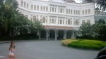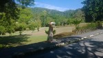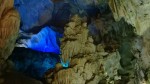 We went on a large junk which was quite an experience, there was plenty of room we were not crammed in but as we pulled away we were descended upon by small sampans and they clambered up the sides of the junk clutching bunches of bananas and (would you believe) tiny babies. They were trying to sell us things as we sailed across the bay but after ten or fifteen minutes they sort of fell away and set off chasing the next junk, what our social services would make of that beggars belief. The journey across the bay was a very quiet and tranquil one, during which we were served Lotus tea and when we finally arrived at our destination we made our way into The Heavenly Palace Grotto, a huge cave cleverly lit with variously coloured lights. The cavern was carved out of the limestone and the water erosion had left all sorts of strange shapes and feature, including the usual stalagmites and stalactites. There were the usual stories about dragons and demons and some rather rude ones surrounding the more erotic shapes naturally carved out of the rocks by the action of water, unfortunately after listening to one of these the ships official photographer, a young girl caught us up and asked what she had just missed whilst filming the part of the cave we were in. When I explained as tactfully as I could she went bright red, said oh! and then, “well perhaps we could use the footage without a description”. I didn’t say anything, but smiled to myself when I thought of someone taking their cruise DVD round to show great granny and suddenly a large stone phallic complete with stone appendices appears on screen without an explanation. Nervous coughs and people saying ‘so how have you been keeping?’ We spent about an hour wandering round the various parts of the cavern finally exiting on the far side, high on a cliff face. As we descended down a narrow stairway carved into the cliff face, we were diverted into a mandatory gift and souvenir shop which was sort of stuck on the side of the cliff face. On the outside of this shop was a rickety wooden platform from where you could take pictures. I took a couple and when I turned to leave my way was blocked by more people pouring on to this tiny wood square. Nothing for it but to push against the tide saying “if I could just get through there will be more space for you”. When I got back on to the steps and looked back the whole shop was creaking and groaning under the sheer weight of people pushing on to it, even the shops owner was looking worried, still it was only a couple of hundred feet up. We carried on down the twisting trail, descending through overhanging trees, thick creepers and wet undergrowth. There was an eerie silence broken only by strange bird calls every now and then, not a breath of wind and the humidity hung heavily this low down. You could understand why the Americans did not like this type of terrain and sprayed it with Agent Orange, we occasional rounded a corner to see, someone sitting motionless in the shade, only really visible because of the cigarette they were smoking (park officials? I didn’t asked, the expression on their face forbid it). We finally reached the bottom where we found our junk tied up at a jetty (it had sailed round from where it had dropped us off).